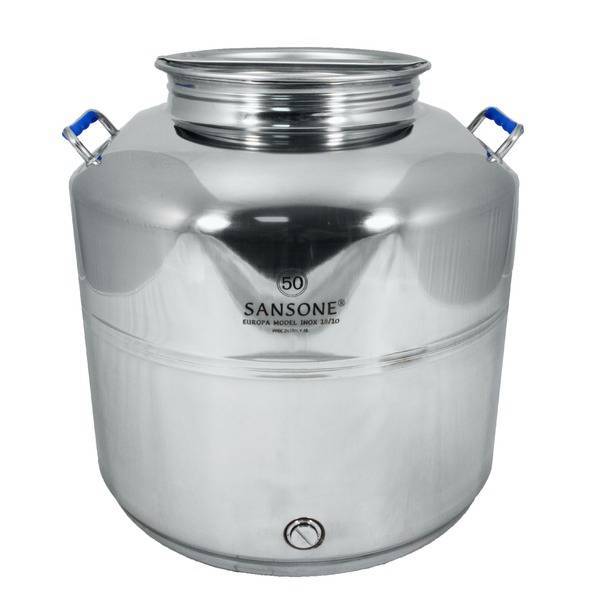 Бидон из нержавеющей стали "Люкс" 50 л предназначен для длительного хранения пищевых и непищевых продуктов. Может использоваться в качестве перегонного куба для самогонного аппарата или в качестве емкости для брожения.