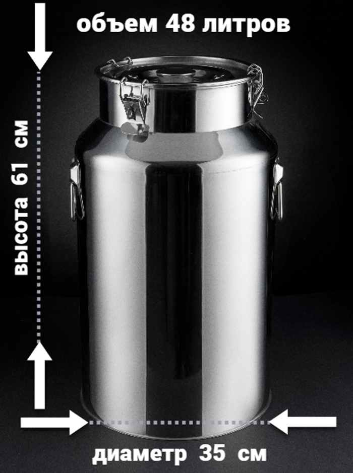 Бидон из нержавейки объемом 48 л "Виномастер" предназначен для длительного хранения пищевых жидкостей (воды, масел, соков, алкогольных напитков) и сыпучих продуктов (круп, орехов, семечек, сухофруктов). Может использоваться в качестве емкости для брожения.