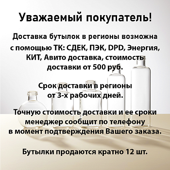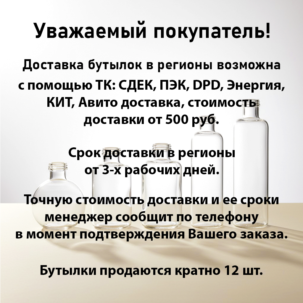 - Бутылки продаются кратно 12шт. Габариты товара (упаковка для транспортировки) - 36*27*16см, 5,78кг.