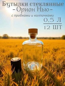 Бутылки стеклянные "Орион НЬЮ" 0,5 л ( 12 шт) с пробками и термоколпачками