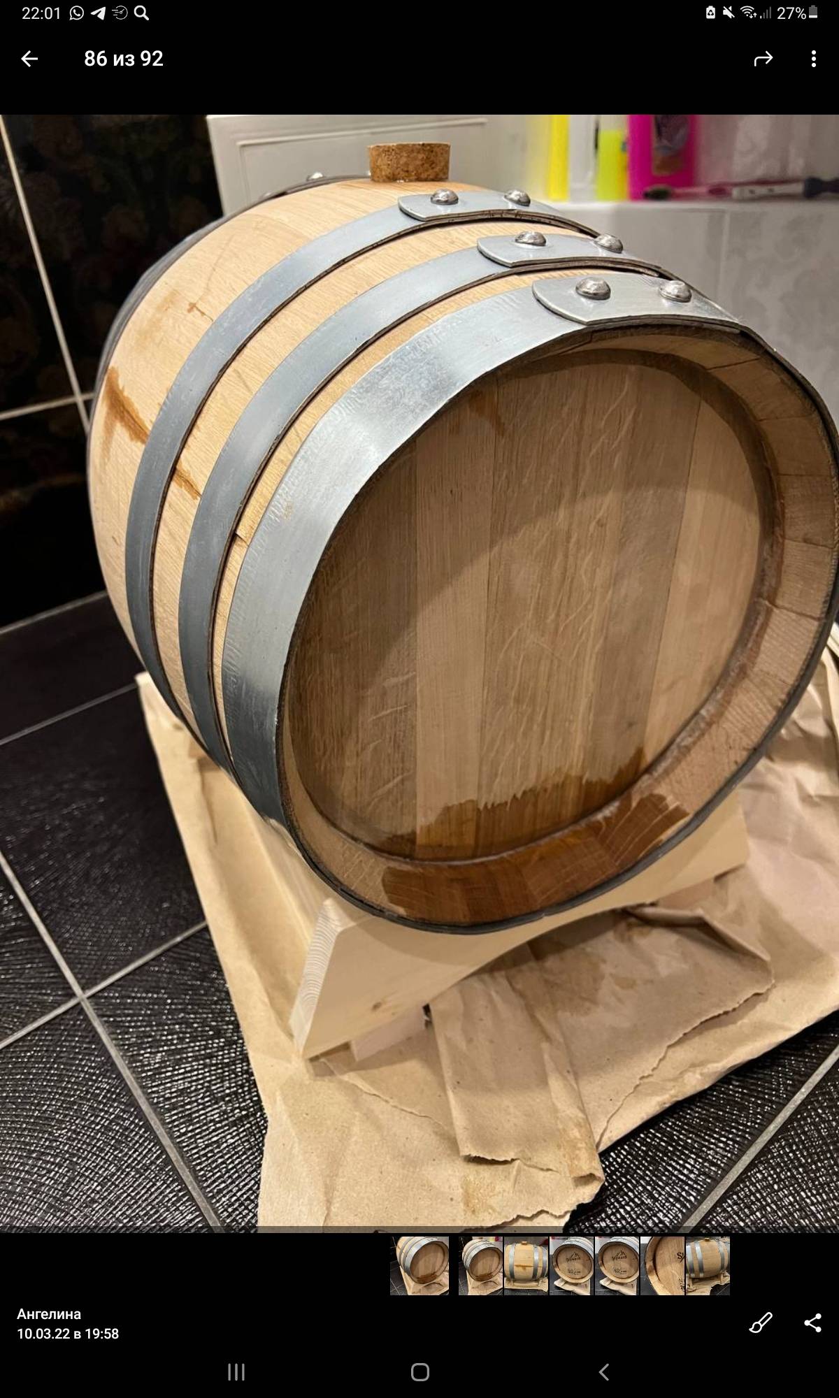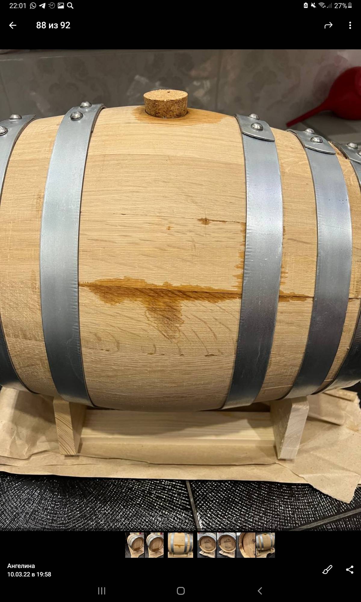 - Качество и санитарная безопасность бочки тщательно проверены, она промыта внутри, продезинфицирована серным фитилем и прошла паровую обработку. Дополнительно проверена на течь.