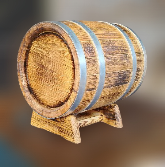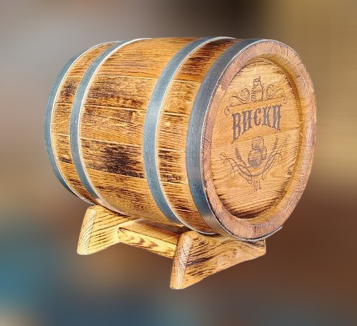 Дубовая бочка подарочная «ВИСКИ» внешний обжиг 10 л (кавказский дуб) - отличный вариант подарка на День Рождения или любой праздник. Бочка имеет привлекательный внешний вид и станет настоящим украшением праздника. Подходит для хранения и выдержки вина, самогона, виски, рома и другого крепкого алкоголя. Выполнена из кавказского скального дуба породы Quercus petraea, возраст которого не менее 80 лет. Бочка изготовлена на современном европейском оборудовании, что гарантирует идеальную геометрию бочки и качественную ее обработку.