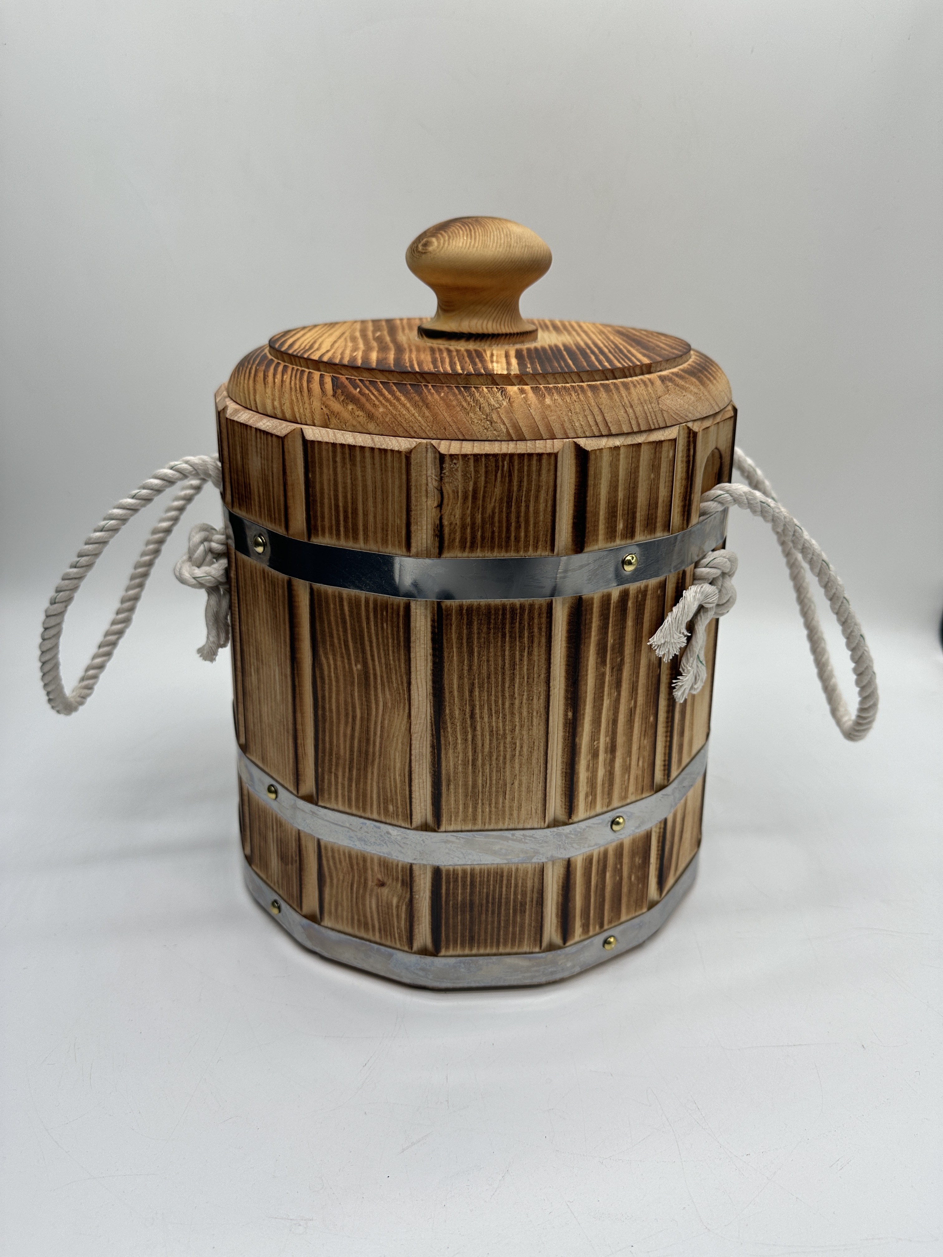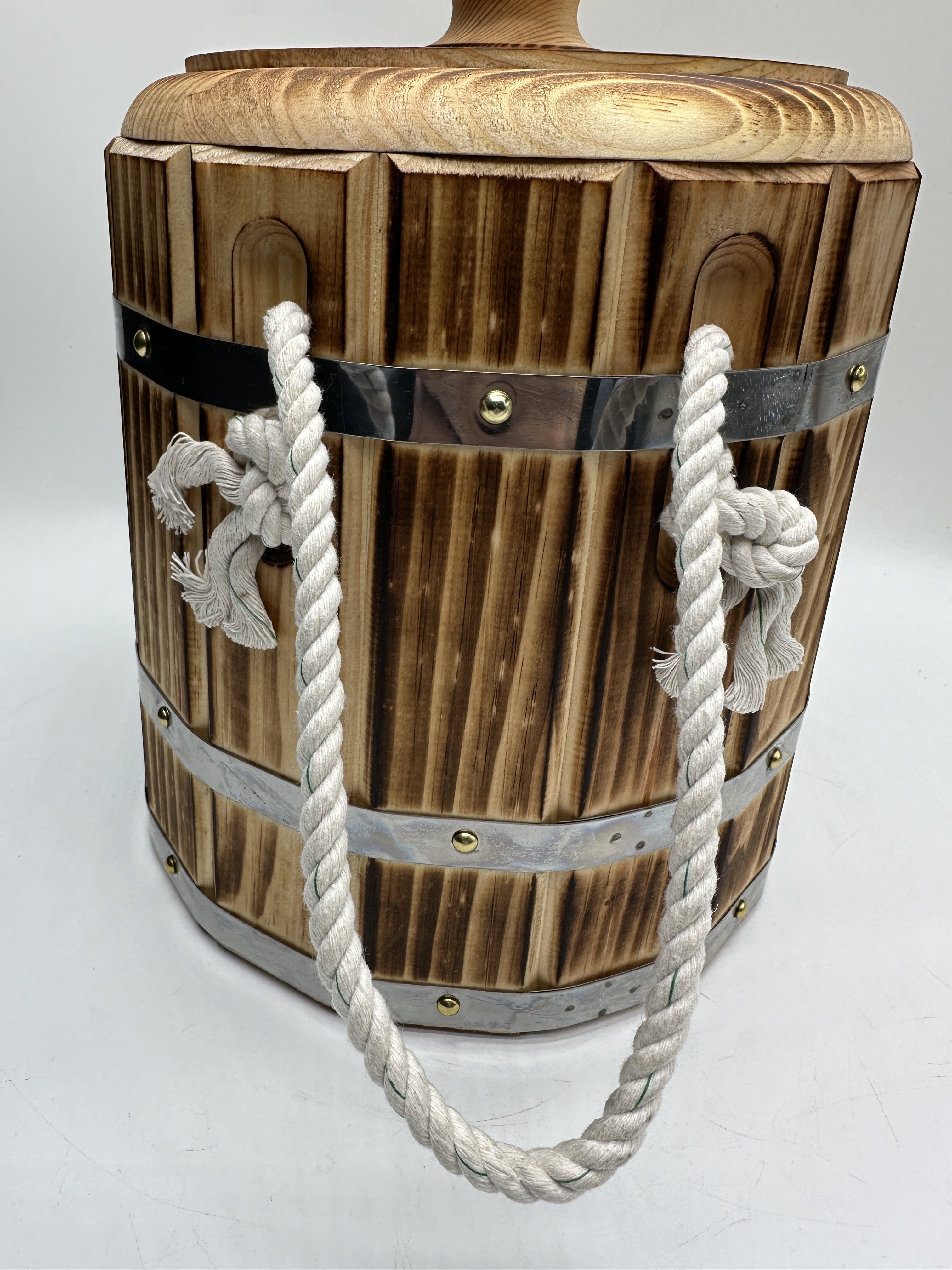 Главное условие для долгой жизни бондарного изделия – частое и регулярное использование тары. Со временем древесина изделия потемнеет – это естественный процесс, который на качество использования тары не повлияет.