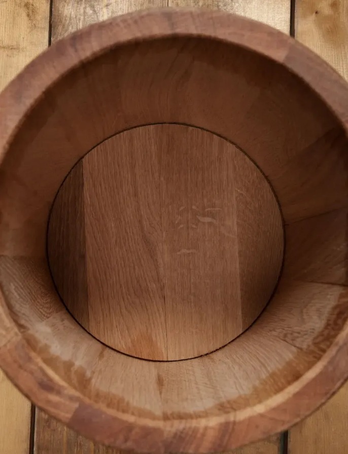 - Дубовая кадка, сделанная вручную, будет идеальным подарком для любителя солений и домашнего консервирования.