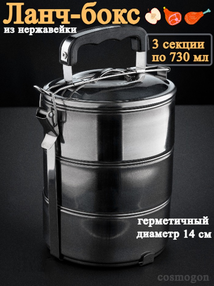 Ланч-бокс 14см 3-секции нержавейка (Китай)