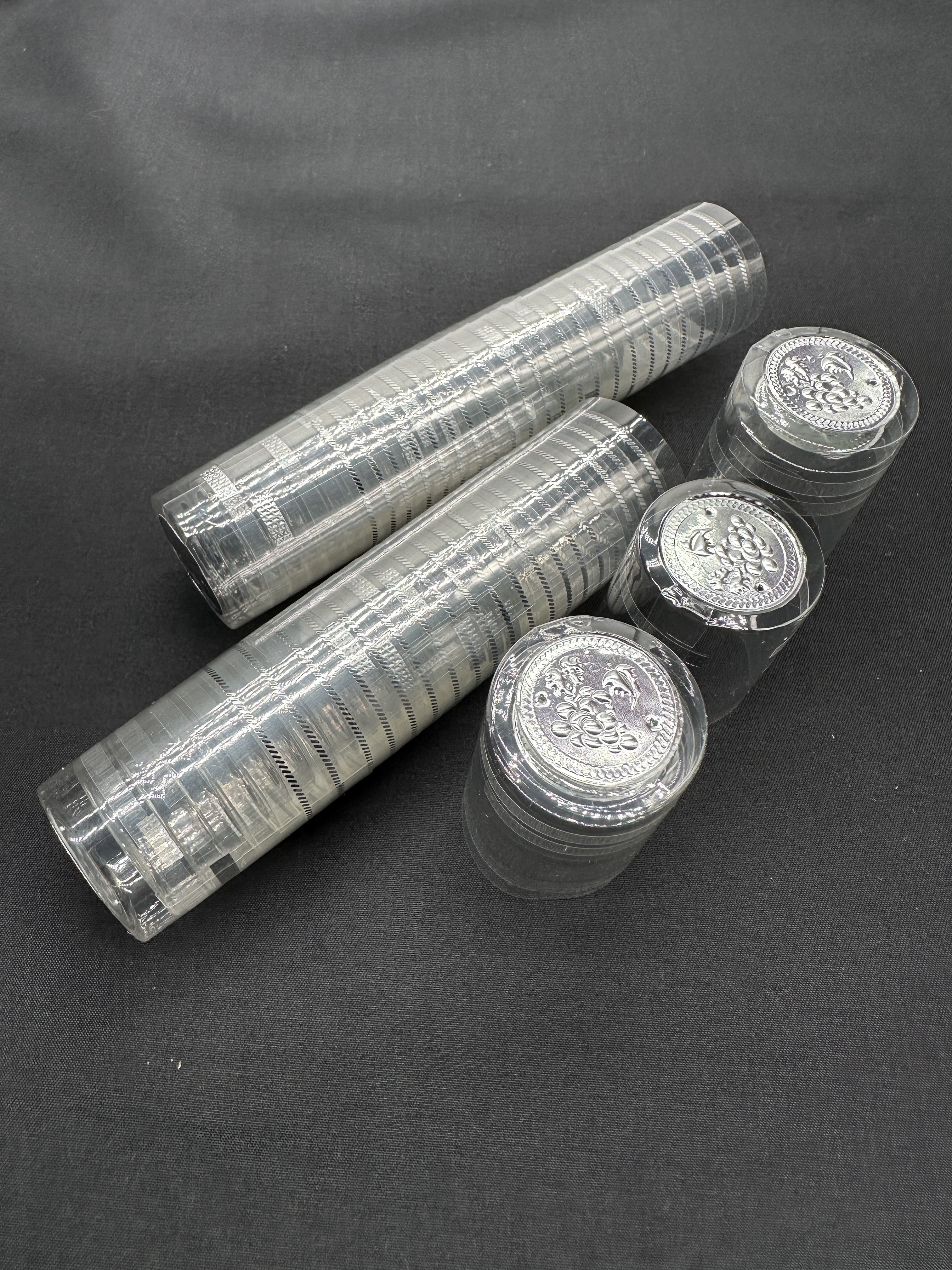 - Выполнен из прозрачной пленки с серебристыми элементами в виде отрывной ленты. Верх также декорирован диском цвета серебра.