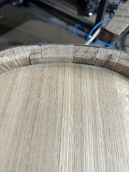 Причина уценки: бочка новая, присутствуют трещины на нескольких торцевых клепках (показаны на фото), на эксплуатацию бочки не влияют.