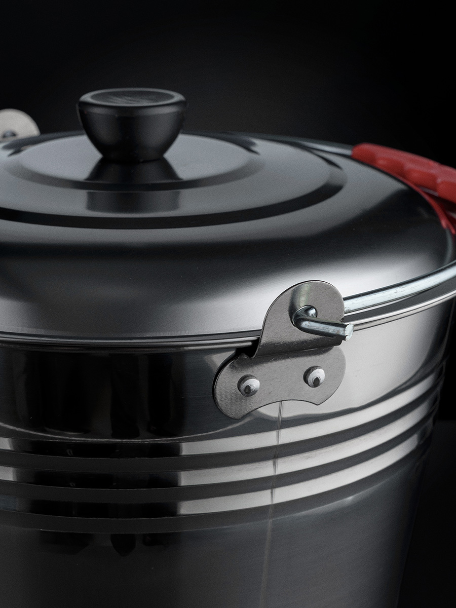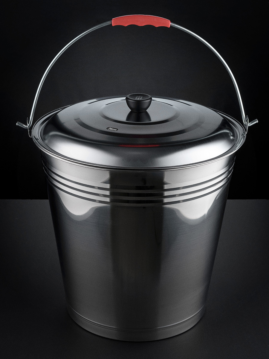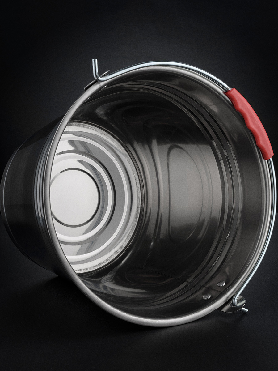 - Ведро сделано из пищевой стали, что гарантирует его безопасный контакт с любыми продуктами.