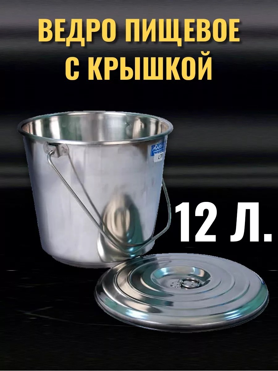 Ведро из нержавейки 12 л с крышкой – это изделие, предназначенное для хранения и транспортировки различных жидкостей и сыпучих материалов.